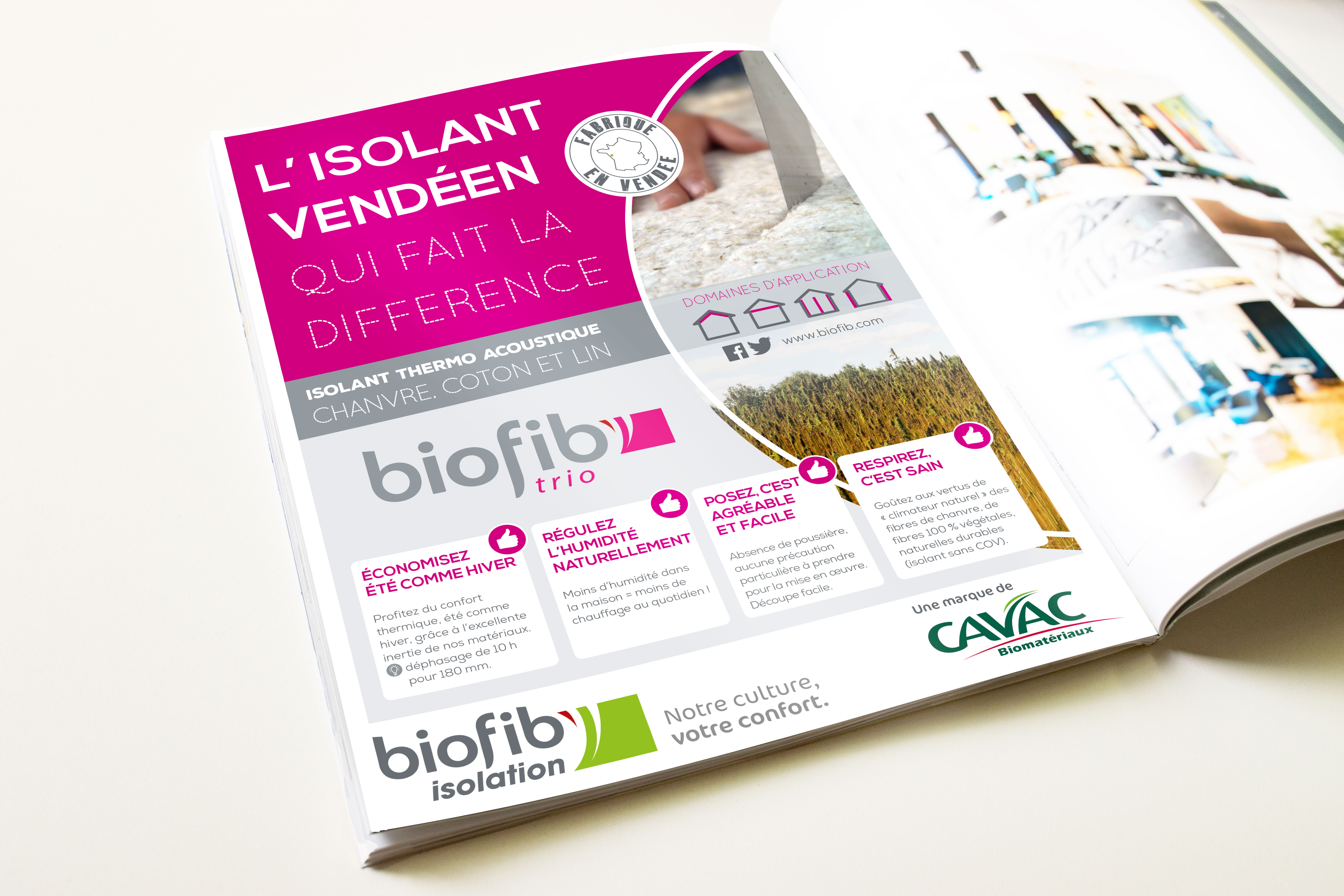 Biofib'isolation est une marque vendéenne de Cavac Biomatériaux, leader en Europe sur le marché de la transformation des fibres végétales (notamment le chanvre) en produits biosourcés.