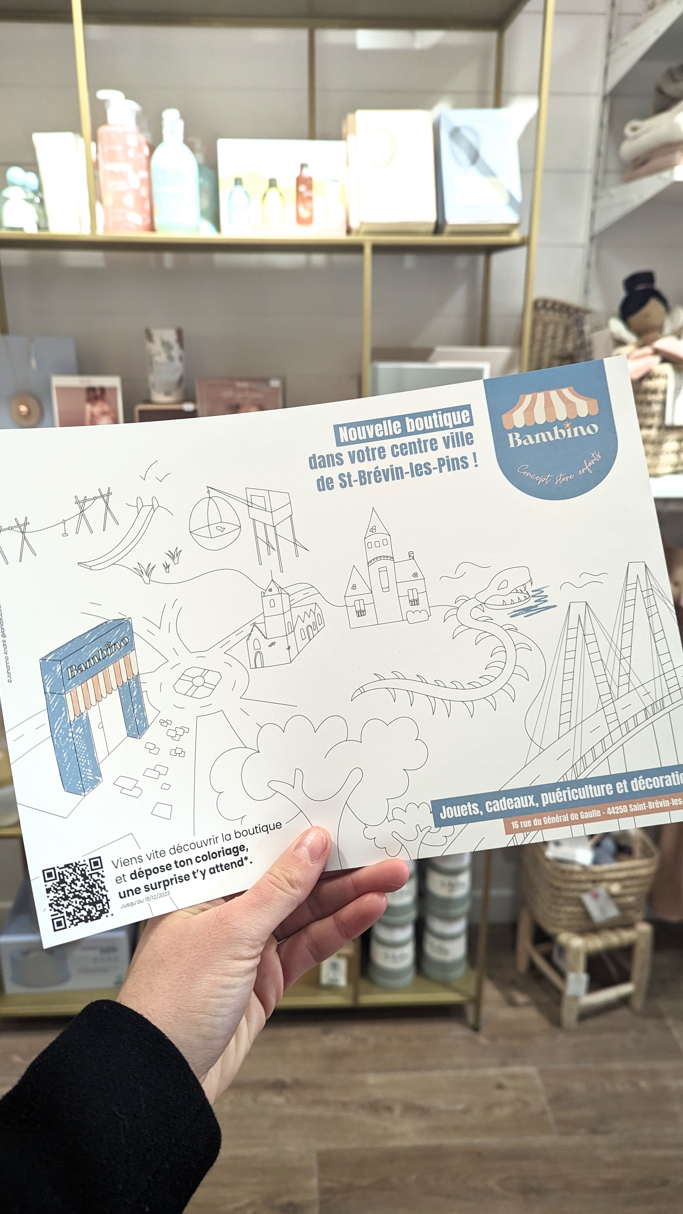 Bambino est un concept store enfants basé à Saint-Brévin-les-pins, en Loire-Atlantique et plus précisemment sur la côte de Jade dans le Pays de Retz. Sa fondatrice Solenne Batard, souhaitait un coloriage représentant cette station balnéaire et permettant de situer géographiquement le magasin. Ce coloriage a été distribué dans environ 5000 boites aux lettres à l'occasion de l'ouverture de la boutique Bambino.
