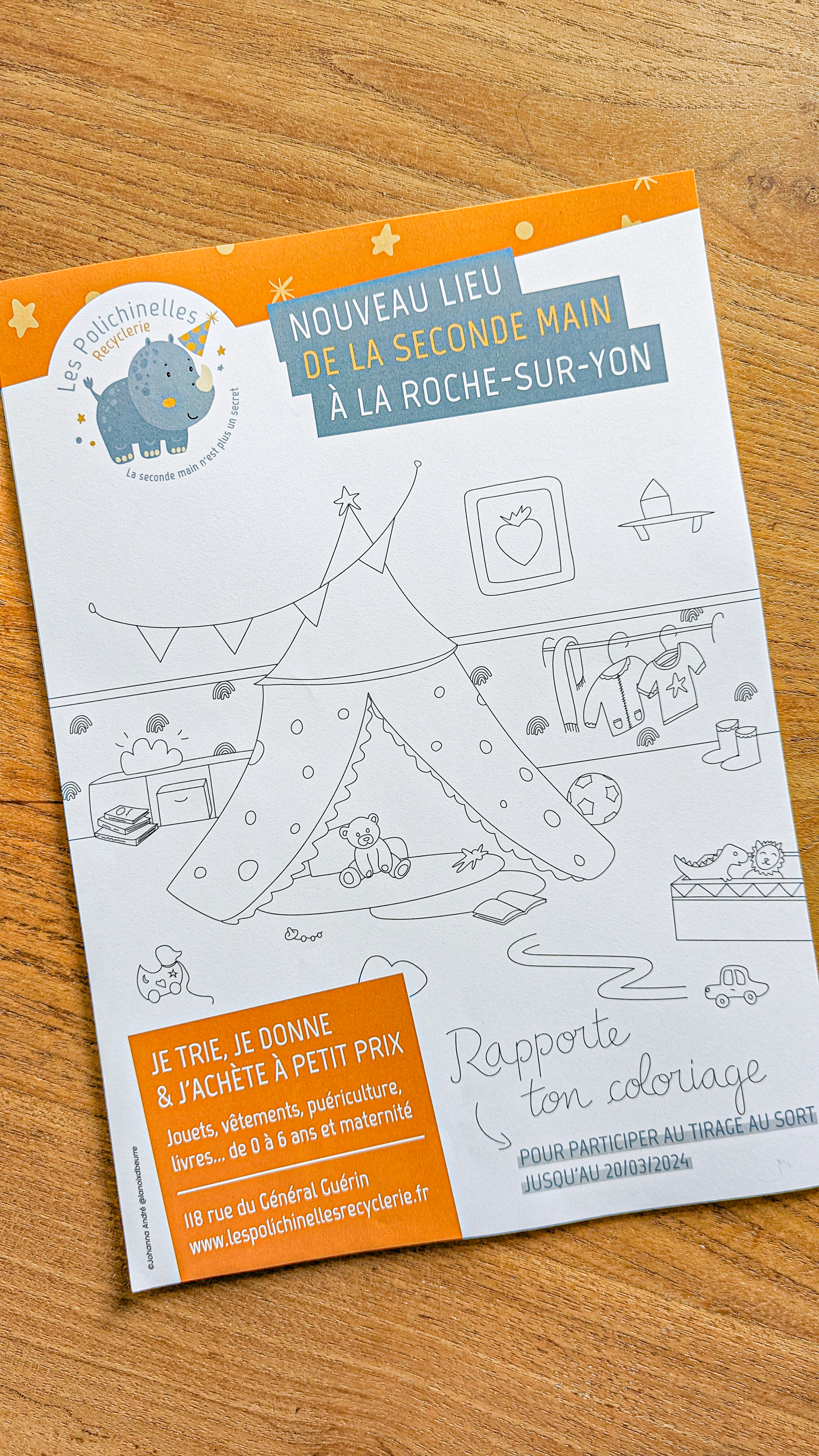 En février 2024, l'association Les Polichinelles ouvrait sa boutique à La Roche-sur-Yon, en Vendée, et à cette occasion avait aussi envie d'un coloriage.